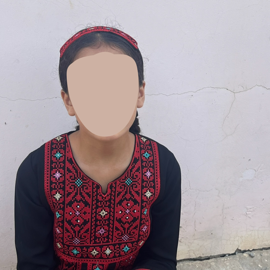 الطفلة م.ا، تبلغ من العمر 10 سنوات و11 شهرًا. لديها شقيقة واحدة، وقد استشهد كلا والديهم في شهر سبتمبر 2025، وهما بلا معيل.